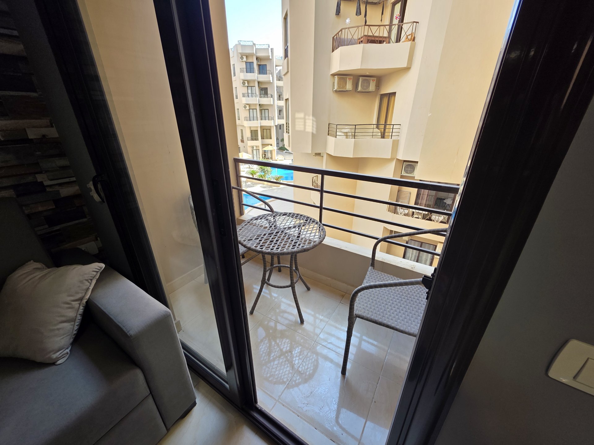 Apartament typu studio 30m, kompletnie wyposażony. Posiada balkon z widokiem na basen.