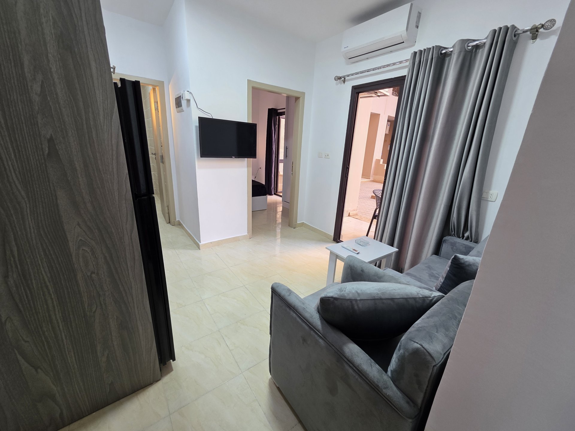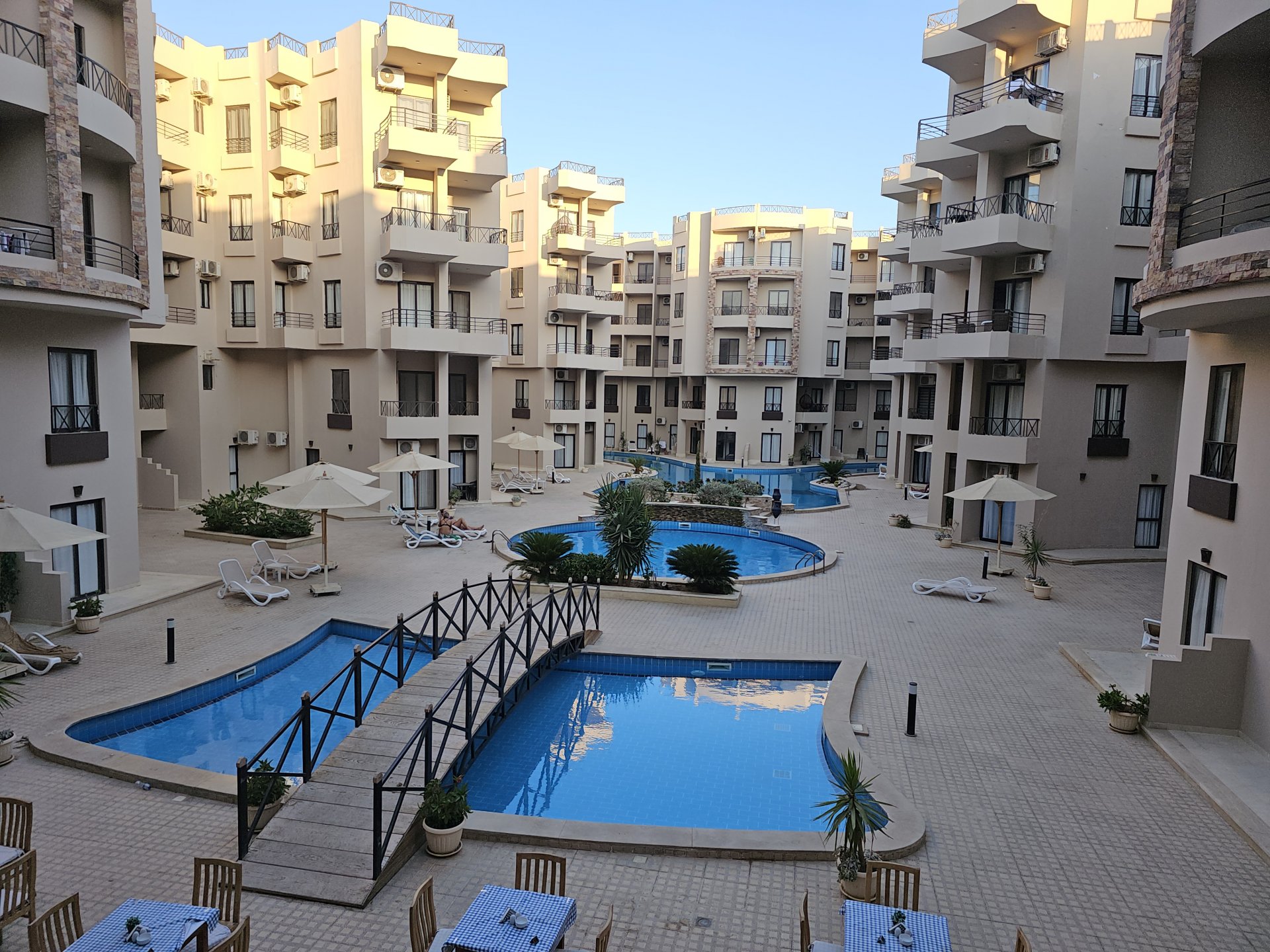 Apartament w Hurghadzie w dzielnicy Al Ahyaa w resorcie Agua Tropical. W resorcie znajdują się 3 baseny i restauracja. Można korzystać również z dwóch sąsiednich resortów Aqua Palms i Aqua Infinity gdzie znajdują się dwa baseny , restauracja , sklep, spa i siłownia. Odległość od publicznej bezpłatnej plaży około 500m.