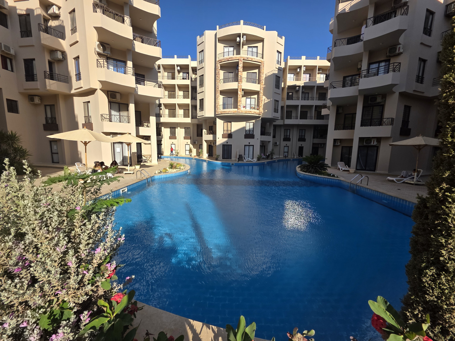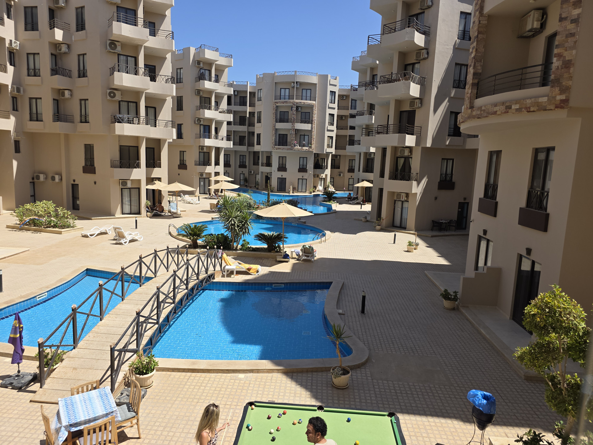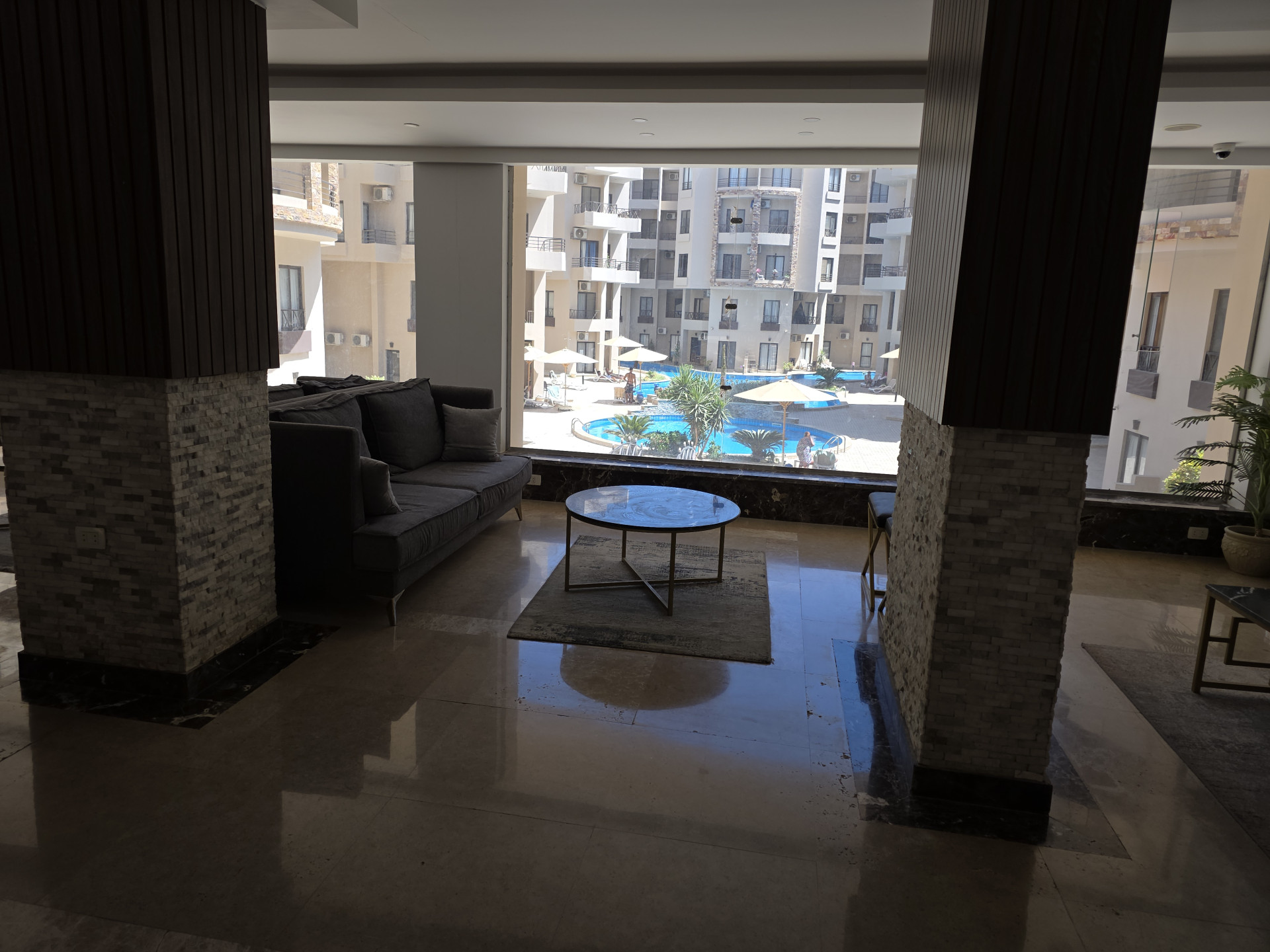 Apartament w Hurghadzie w dzielnicy Al Ahyaa w resorcie Aqua Tropical. W resorcie znajdują się 3 baseny, restauracja oraz sklep. Można korzystać również z dwóch sąsiednich resortów Aqua Palms i Aqua Infinity , w których znajdują się dwa kolejne baseny, sklep , spa , salon piękności i siłownia. Resort jest bardzo czysty i zadbany